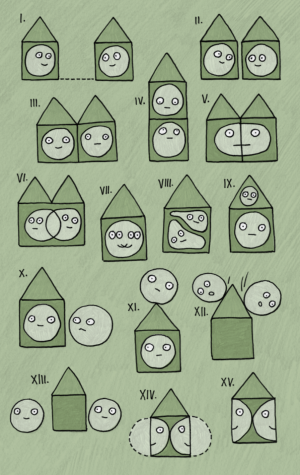 Számomra a könyv illusztrációiban is megvalósul a sűrítés logikája. Gráf Dóra volt az Útikalauz a vershez illusztrátora is, feltételezhető, hogy gondolkodásmódja organikusan kapcsolódik Fenyő D. világához. A fejezetek visszatérő elemeihez piktogram szerűen ugyanazok a rajzok tartoznak. A 14 verset pedig 14 önálló rajz illusztrálja. Ezek a képek azonban számomra nem „egyszerű illusztrációk”, hanem különleges, egyéni látásmóddal sűrítenek és egyben képi értelmezését is adják annak a témának, amelyhez a szerző a verset kapcsolta.