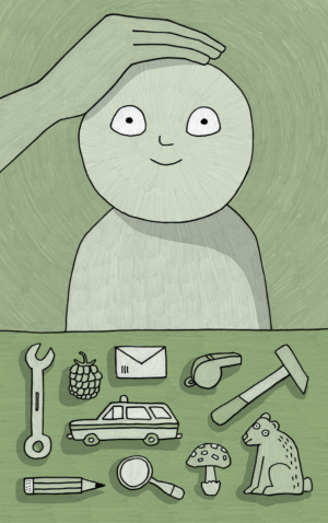 Gráf Dóra illusztrációjaNem versíró, de versolvasó és értelmező tanárként természetesen számba veszi, hogy a tanítandó verselemzési szempontok nagyon is rímelnek azoknak a poétikai eszközöknek az ismeretével, amelyekkel a verset írni tanulónak is tisztában kell lennie: a forma, azaz a techné tudása, a stílusok, stíluseszmények, különböző korok versalkotási szokásainak, hagyományainak ismerete, az alapvető költői eljárások – képalkotás, metaforateremtés, alakzatok alkalmazása. Azonban mindezt egyáltalán nem tankönyvszerűen veszi végig, hanem, ahogy már említettük, a versíró ember élményéből indulva, amely élményt a konkrétságtól eloldva univerzálissá tesz. Így egy-egy elemzést sok-sok kérdés vezet be, majd következik az első sor(ok) szorosabb vizsgálata, végül a teljes versről már egy jóval rövidebb gondolatmenettel zárja az esszéisztikus részt. A szakmai útmutató, de legalábbis a versírás folyamatában orientáló tartalom pedig a „Most te következel!” felszólítás utáni három részben bontakozik ki. A „Kövesd a témát!”, „Kövesd a formát!”, „Kövesd a gondolkodásmódot!” hármas egysége egyszerre tekinthető kreatív írásgyakorlat alapvetésnek és poétikai-stilisztikai tanításnak is. Nagyon pontosan végiggondolt, hogy melyik vers kapcsán milyen formai kérdések kerülnek elő, mint például az enjambement szerepe, a rímelési hagyomány fontossága, a dalszöveg sajátosságai vagy éppen a szabadvers vagy a prózavers mibenléte fejtődik-e ki.