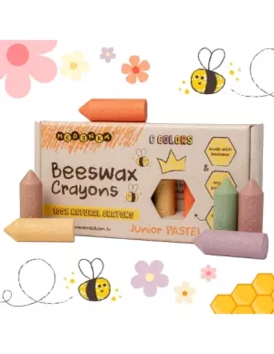 Méhviasz zsírkréta készlet kicsiknek - 6 pasztell szín - Rövidebbek és vastagabbak, mint a hagyományos ceruzák, ergonomikusak és kis kezekben is könnyen megfoghatók. Ezenkívül nagyon ellenállóak, maximális biztonságot nyújtanak használat közben. És micsoda méhviasz-illatuk van!