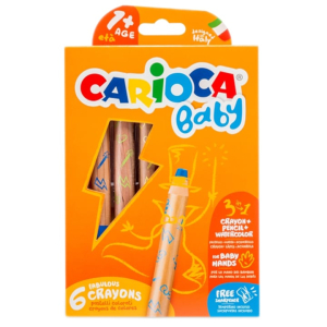 Carioca - 3 az 1-ben bébi zsírkréta - 6db - Ez zsírkréta kapott egy fa héjat, így pont olyan, mintha ceruzával dolgoznának a gyerekek, így sokkal tisztább mint a hagyományos zsírkréták. A tapasztaltabb rajzolók pedig egy kis vizes ecsettel egyszerűen festményt varázsolhatnak a megrajzolt műből. A zsírkrétát pont úgy ki lehet hegyezni, mint egy ceruzát!