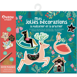 A csomag előre kivágott díszeket tartalmaz, amelyeket lekaparhatsz vagy csillámporral díszíthetsz, és az egész család számára elegendő lesz a díszítenivaló, hiszen a készlet tartalma