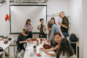 Fotó: Vörös DóraEzt a tudást próbálta megmutatni, ebben támogatni a workshop résztvevőit. Előbb a saját munkamódszeréről mesélt, majd három szokatlan és vicces (svéd nyelvű) zeneszámot rakott be, hogy olyan figurát alkossanak meg a résztvevők, aki ezeknek a világában jól érzi magát, ezt hallgatja, erre táncol. Az egyik egy mikulásos sramli volt, a másik egy nyávogós macskazene, a harmadik egy romantikus szám. Nem csoda, hogy szokatlan télapós és cicás rajzok is születtek, amelyekből Ole tanácsaival megtámogatva, nem egyből szinte egy komplett sztoriboard alakult ki a nap végére. Volt, akinek a Télapója a boszorkány elkóborolt macskáját megtalálta, majd a tulajdonossal a helyi kocsmában találkozva keveredett romantikus kalandba, volt, akinek a macskája dzsipen vágtatott egy road movie-ban, másnak a macskája tigrissé változott. A lényeg megvolt: érzelmek és humor összefonódása egy olyan kép-mesében, aminek van magja, ami köré az egész szerveződik.