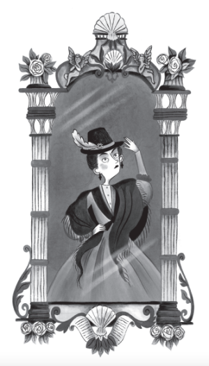 A falhoz sietett, Ruby szorosan a nyomában. A tükörben – a varázstükörben, az időutazó tükörben, az ő tükrükben – most egy középkorú asszony látszott régimódi ruhában – talán viktoriánus, gondolta Alex –, gyapjúkendővel a vállán, hatalmas szoknyában. Egy kalaptűvel hadonászva grimaszolt a saját tükörképére. Aztán hirtelen valami megváltozott. Döbbenet suhant át az arcán, mint aki nem akar hinni a saját szemének. Hátrált egy lépést, és úgy nézett a tükörbe, mint aki szellemet lát.
