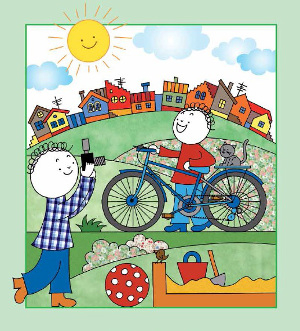 A könyv főszereplője, Andris épp most lett hét éves, így a szülei és testvérei gőzerővel szervezik a születésnapját. Egy ilyen esemény Andris és a család életében rendkívül fontos, mindenkinek jelen kell lennie, a közeli és a távolabbi rokonoknak egyaránt. Amikor elérkezik a várva várt nap, Andris megkapja szüleitől az ajándékát, ami nem más, mint egy pompás kék bicikli, s lassan a vendégek is megérkeznek. Andris édesapja fényképezőgépével mindenkit lefotóz, így az ő kameráján keresztül ismerhetjük meg a közeli és távolabbi rokonait, a családi barátokat. Az igencsak kiterjedt család tagjait Bartos Erika