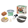Számos kiegészítő található még a csomagban: 1 kg levegőn száradó agyag, 5 fa és fém szerszám, 1 szivacs és 2 lapát.