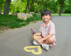 A három élénk színű krétabetét látványos mintákat hagy maga után, és könnyen cserélhető. A játék kültéri használatra készült.