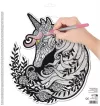 Vidd be a luxus és a kreativitás különleges hangulatát a szobádba ezzel a gyönyörű bársony színező készlettel! A fekete bársony felületre nyomtatott kontúrok lenyűgöző kontrasztot adnak, így a színek élénken, vibrálóan jelennek meg. A készlet egy 30×30 cm‑es unikornis mintát tartalmaz, amely csak arra vár, hogy életre keltsd színes ceruzáiddal vagy filctollaiddal.