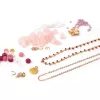 Ez a különleges ékszerkészítő szett lehetővé teszi, hogy teljesen egyedi, mégis harmonikus és stílusos ékszereket alkoss. A készletben található gyöngyök, fonott elemek, aranyszínű kiegészítők és rózsakvarc hatású díszek segítségével többsoros nyakláncot, dupla karkötőt és fülbevalót készíthetsz — mindet a saját ízlésed szerint.