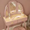 A háromrészes, elegáns tükörben minden szögből megcsodálhatod magad, a tágas fiókokban pedig elférnek a legszebb kiegészítők és ékszerek.