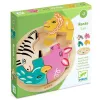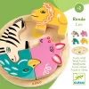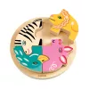A készlet 4 darab fából készült állatfigurát és egy alaplapot tartalmaz. A termék méretei: Ø 15 x 2 cm, az ajánlott életkor 2 éves kortól.