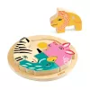 Kreatív játék: A vastag, domborműves kialakítású állatok önmagukban is megállnak a lábukon, így a puzzle kirakása után külön figuraként is használhatók a szerepjátékokban.