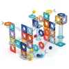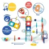 A készlet 100% MABS anyagból készült, amely könnyű, tartós és áttetsző — így a gyerekek jól láthatják a golyók útját. A csomag egy praktikus tárolódobozt is tartalmaz, amely megkönnyíti a rendszerezést és a szállítást.