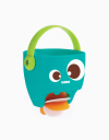 Vidám színekkel és vicces arccal ellátott kis vödör, amelynek az alján kis forgó malom található.