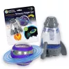 A játékok további meglepetéseket is rejtenek: csavard el a rakéta tetejét, hogy kattogó hangot adjon, majd kapcsold le a villanyt, és fedezd fel a világító elemeket!