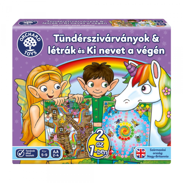 Ez az élénk színekben pompázó Orchard játék, egyszerre két klasszikus játékot is tartalmaz! A táblás játék egyik oldalán el kell juttatni kedvenc tündéredet a bagoly odújába, míg megfordítva a táblát, egy klasszikus „Ki nevet a végén”-t tudsz játszani pajtásaiddal. És ha mindez nem lenne elég, akkor a táblát Te magad állíthatod össze nagyméretű kirakós elemekből.