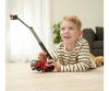 A piros tűzoltóautó forgó kerekekkel rendelkezik, és a kisgyermekek könnyen manőverezhetnek vele. Ezenkívül szirénával és villogó lámpákkal is figyelmeztethetik forgalom többi résztvevőjét.
